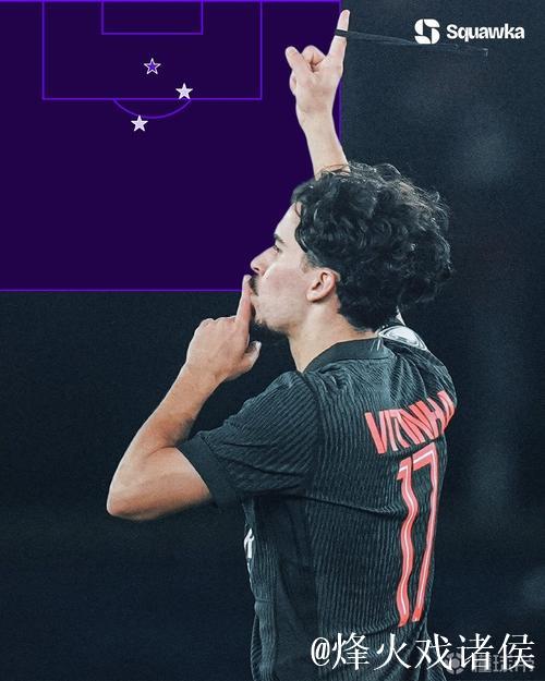 在这个注定被载入欧冠史册的夜晚,维蒂尼亚用一场几近完美的个人表演,把自己的名字写进了纪录之中——他成为欧冠历史上第九位在对阵英格兰球队时上演帽子戏法的球员。这位葡萄牙中场,在本就不乏巨星闪耀的赛场上,